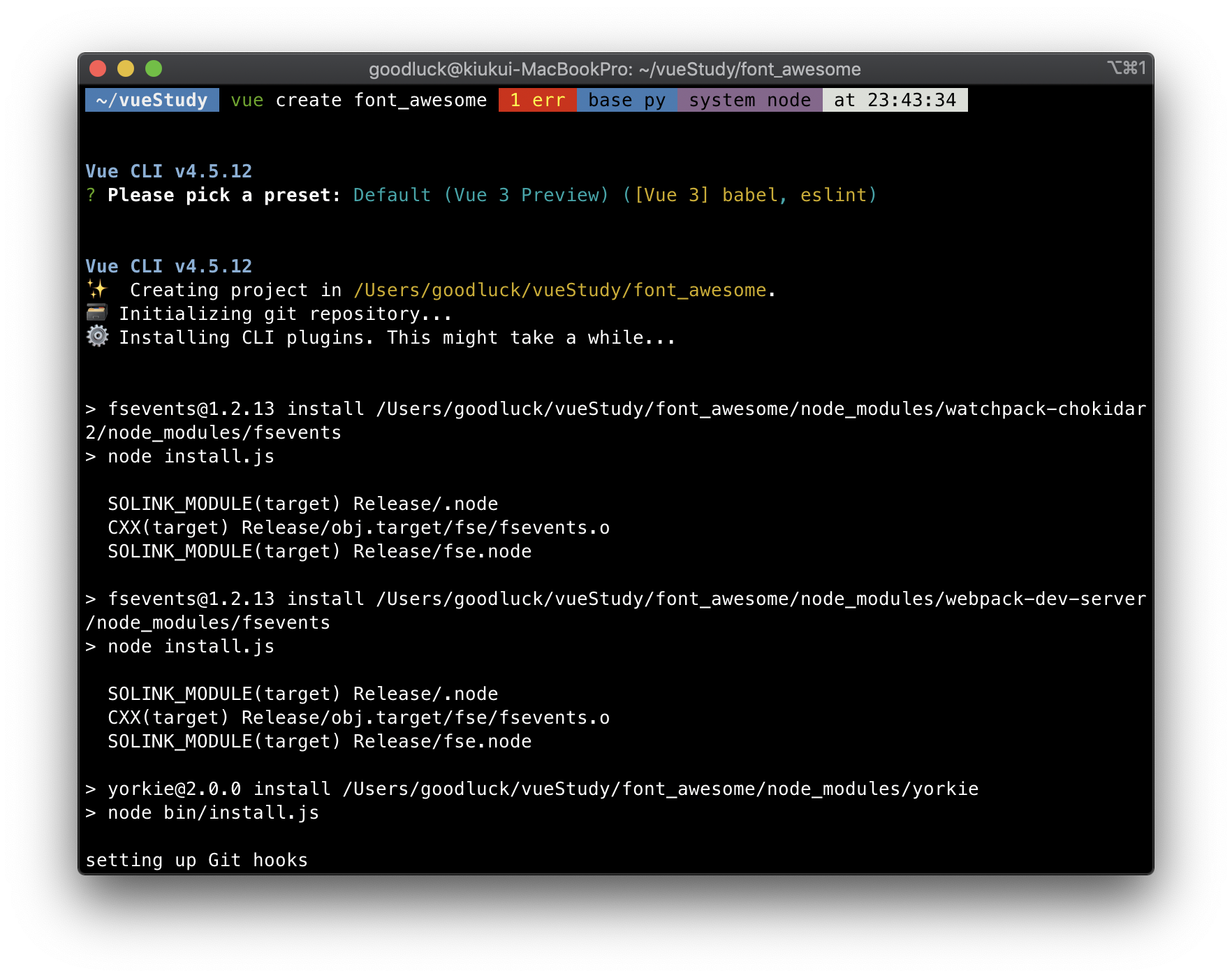 vue create "프로젝트명" 프로젝트를 생성한다.